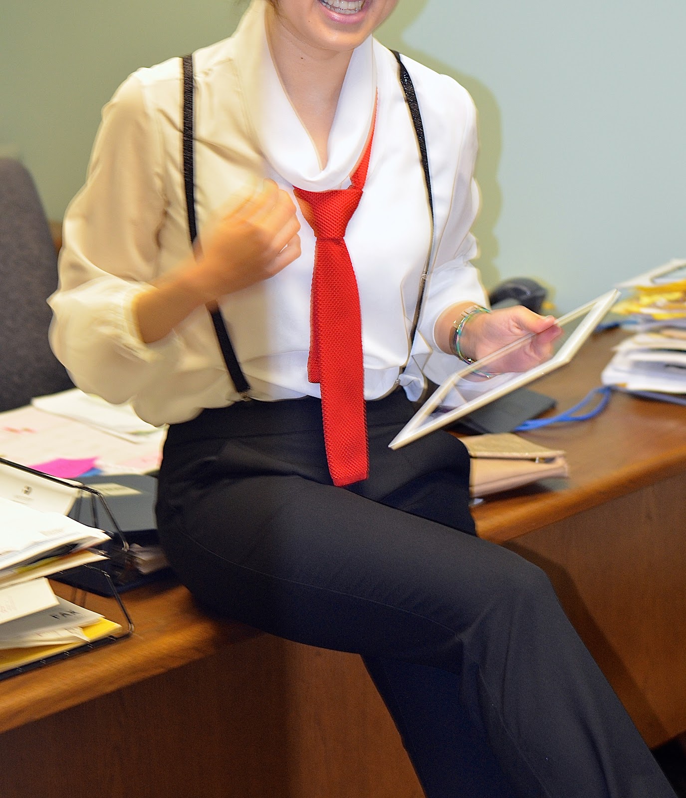 Nunca as tenido una de esas noches que quieres cambiar tu típico de estilo y hacer algo diferente? Todos saben como las chicas se visten cuando tienen una salida por la noche. Por lo cual, que tal resaltar un poco entre todo el grupo con una ropa diferente pero seguir siendo femenina! Vestirse con pantalones negros, camisa blanca, corbata y tirantes es mas un look masculino y de oficina verdad?! Pues le di un toque femenino en agregar zapatillas, un bolso color natural, una corbata suelta y mi personalidad. Tengo otras camisas de vestir mas formales pero quise darle un look diferente en usar esta blusa blanca con cuello suelto y colocar una corbata roja. Me divertí mucho con este vestuario!!